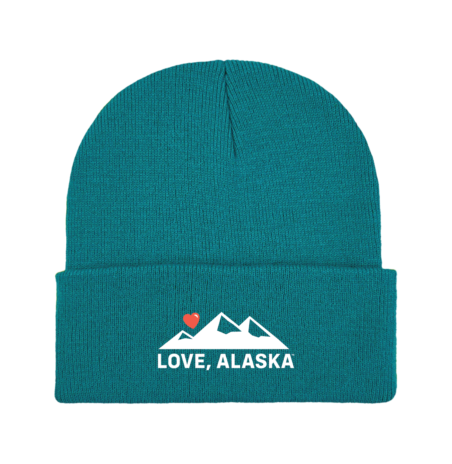 Wrap up, wander back, this cozy beanie signs every chilly day with “Love, Alaska.” 100% acrylic. Adult sized.