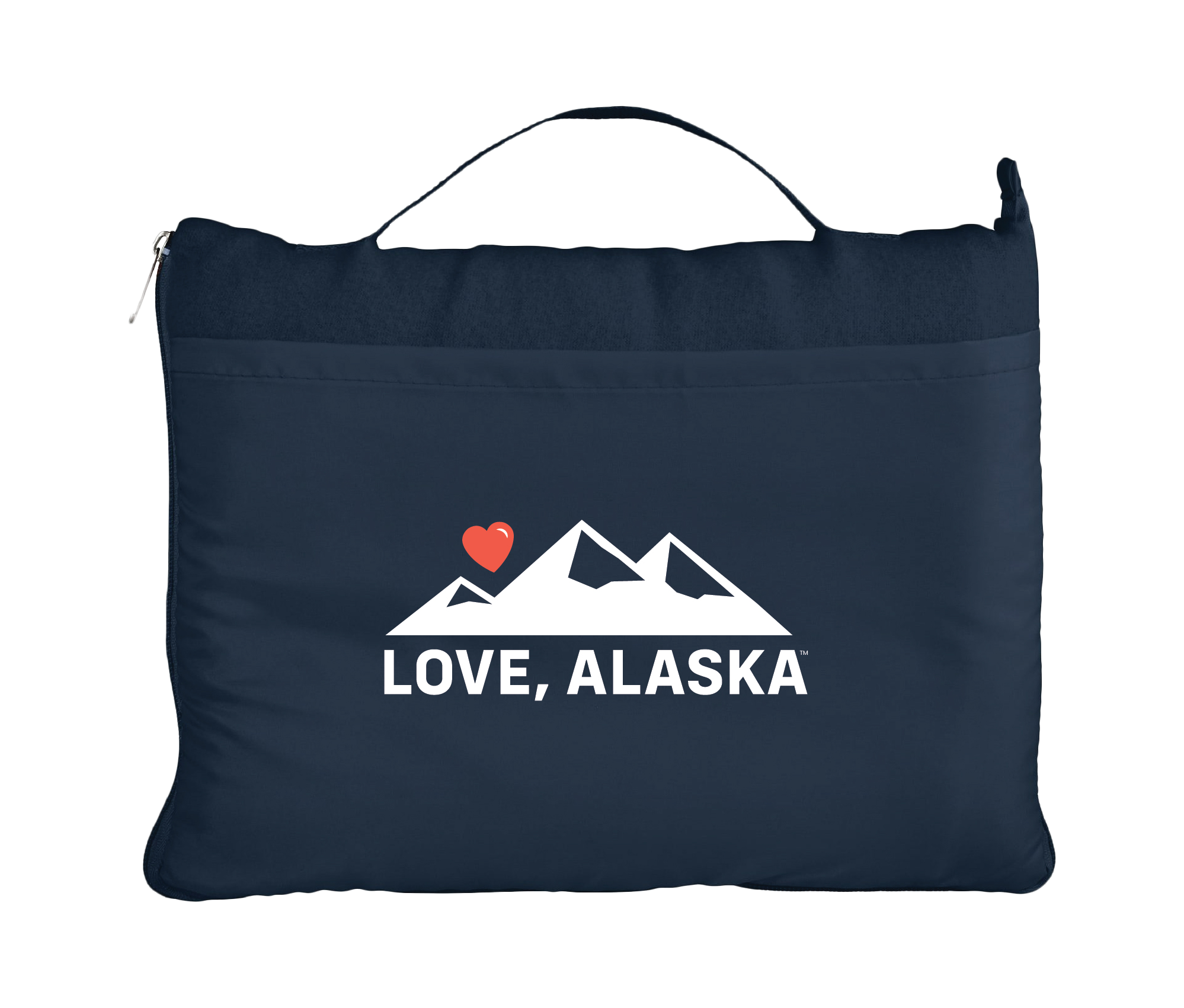 Big state, big comfort. A 50″ x 60″ fleece that packs into a petite tote, ready to go. Travel-sized 10.24” x 11.6” tote with carry handle.